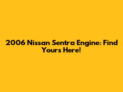 2006 Nissan Sentra Engine: Find Yours Here!