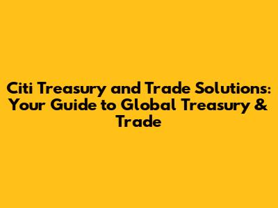 Hey there, finance folks! Ever heard of Citi Treasury and Trade Solutions (TTS)? If you're knee-deep in the world of global finance, then it's a name you need to know. But if you're new to the game, don't sweat it – we're about to break it all down for you. Think of Citi TTS as a powerhouse that helps businesses of all sizes manage their money, trade, and overall financial health. From multinational corporations to smaller businesses, Citi TTS offers a suite of services designed to streamline financial operations. Let's dive in and explore what makes Citi TTS such a crucial player in the global financial landscape, shall we?