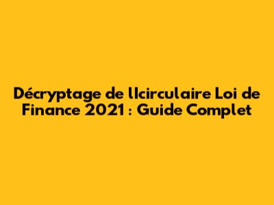 Comprendre l'Icirculaire Loi de Finance 2021 : Qu'est-ce que c'est exactement ?