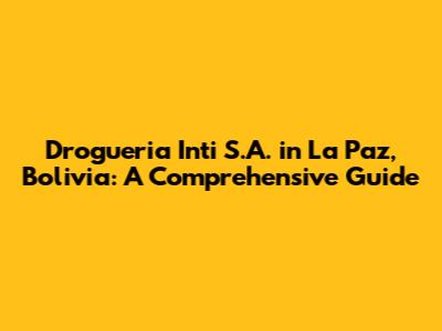 Drogueria Inti S.A. In La Paz, Bolivia: A Comprehensive Guide