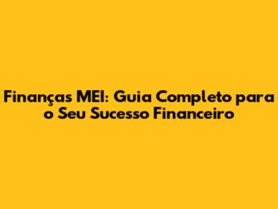 Finanças MEI: Guia Completo Para O Seu Sucesso Financeiro