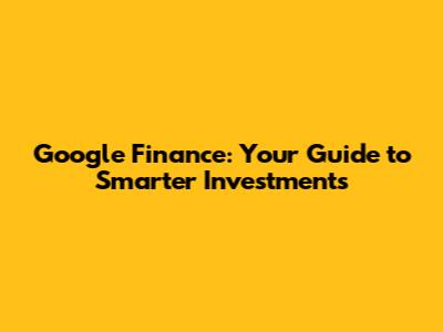 Google Finance: Your Guide To Smarter Investments