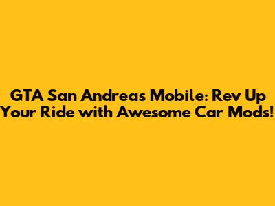 Hey there, fellow gamers! Are you ready to take your GTA San Andreas Mobile experience to the next level? Do you want to cruise the streets of San Andreas in style with a pimped-out ride? Then you're in the right place! We're diving deep into the world of car mods for GTA San Andreas Mobile, showing you how to install them, and even highlighting some of the coolest mods out there. Get ready to transform your gameplay and bring a whole new level of excitement to your mobile adventures. Let's get started!
