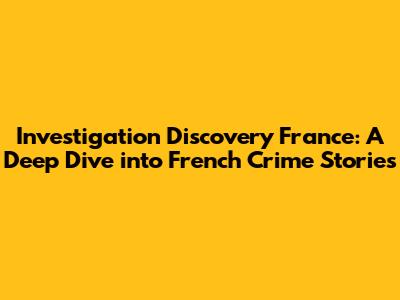 Investigation Discovery France: Explore The World Of French Crime