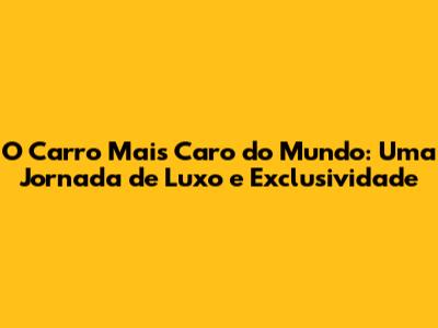 O Carro Mais Caro Do Mundo: Uma Jornada De Luxo E Exclusividade
